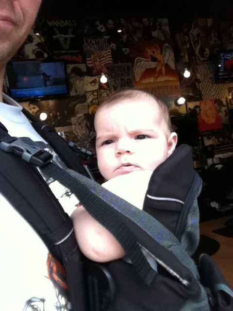 Here's Zoe waiting semi-patiently while Niklas gets a haircut.