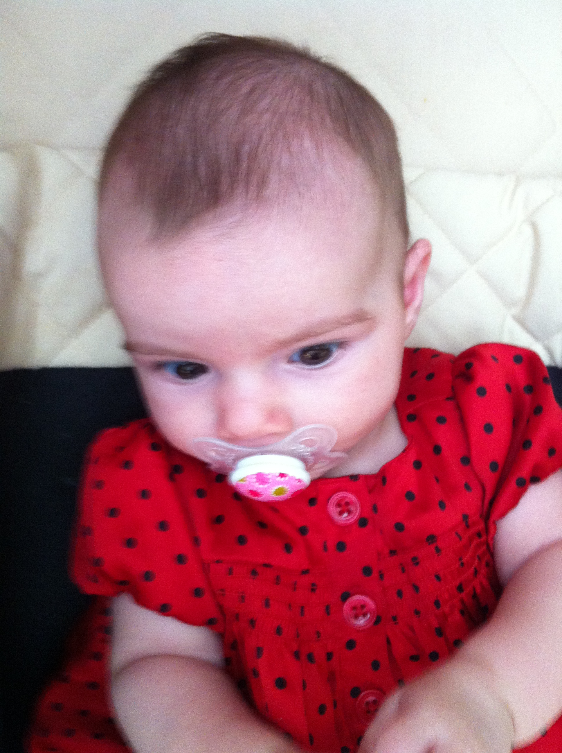 Zoe shows off her cute kitty bottom, her sleep induced baldspot and her inability to wear socks.