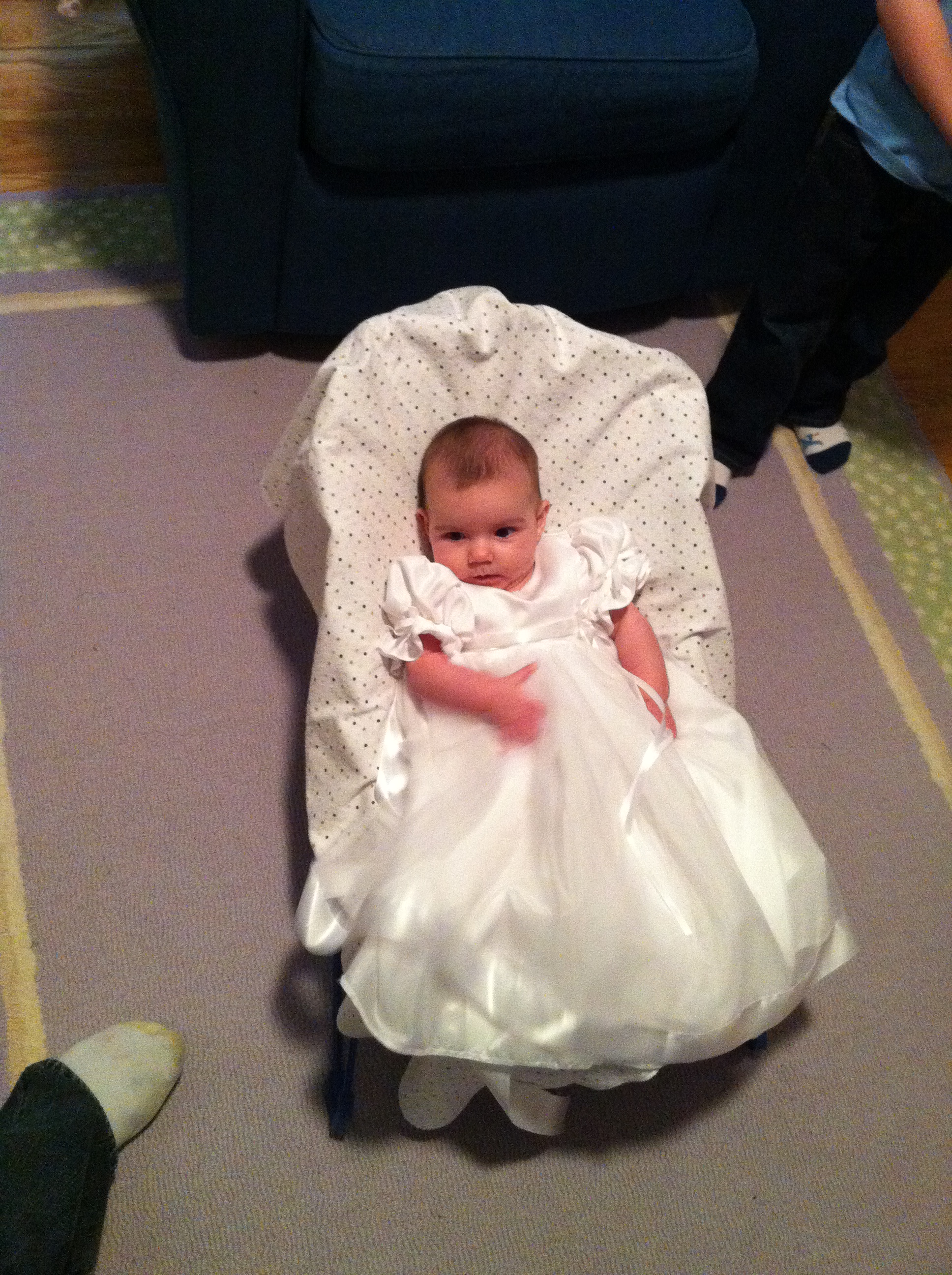 Here's a shot of Zoe as part of our quest to get a picture of her in her Christening dress where she is not screaming.
