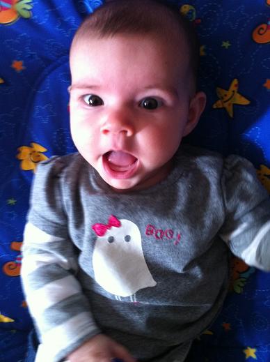 Here's Zoe looking cute while continuing with her current project wherein she tries to eat her own hands.