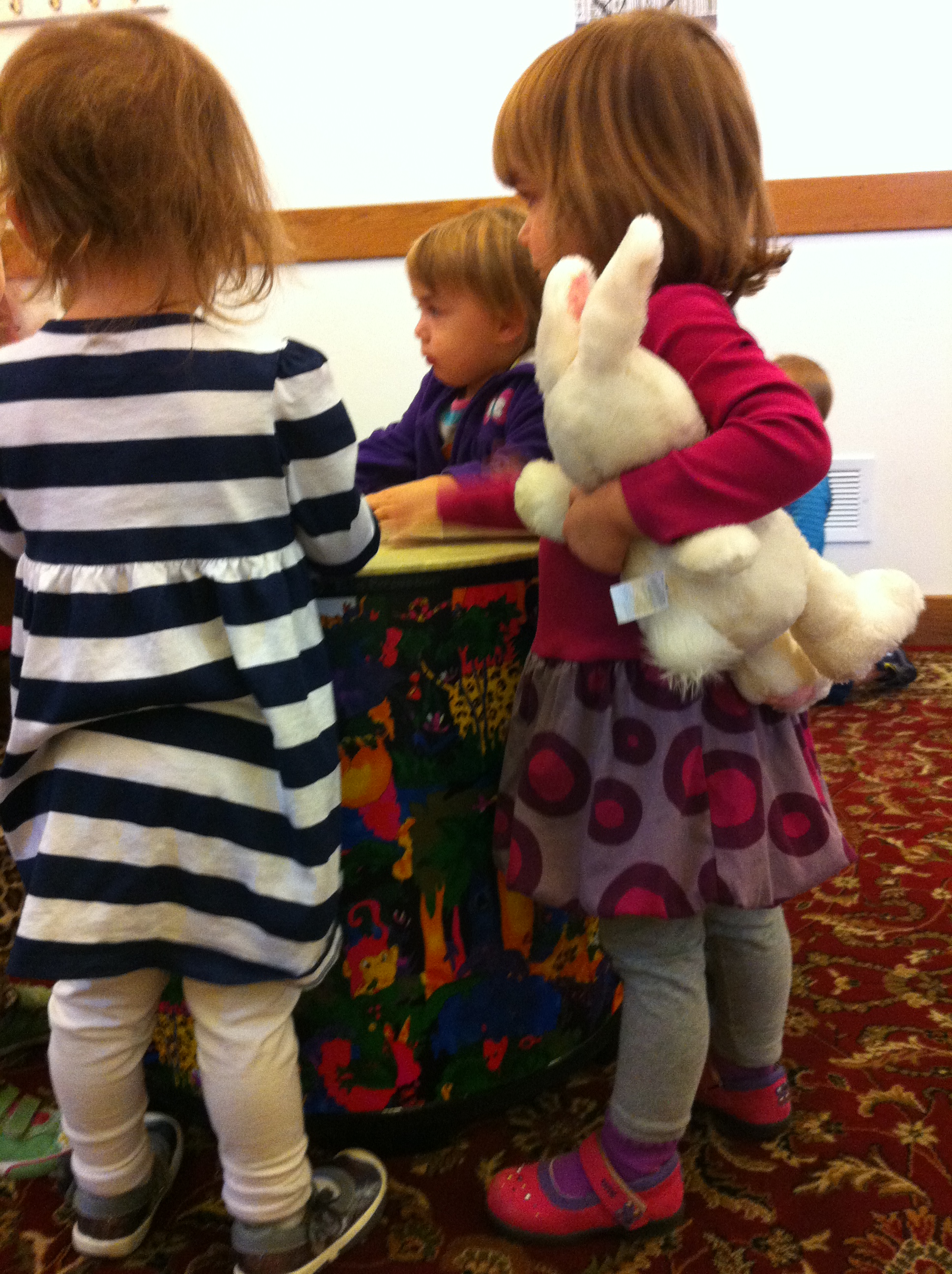 Here's Zoe and a girl who's name escapes me at music class this week.