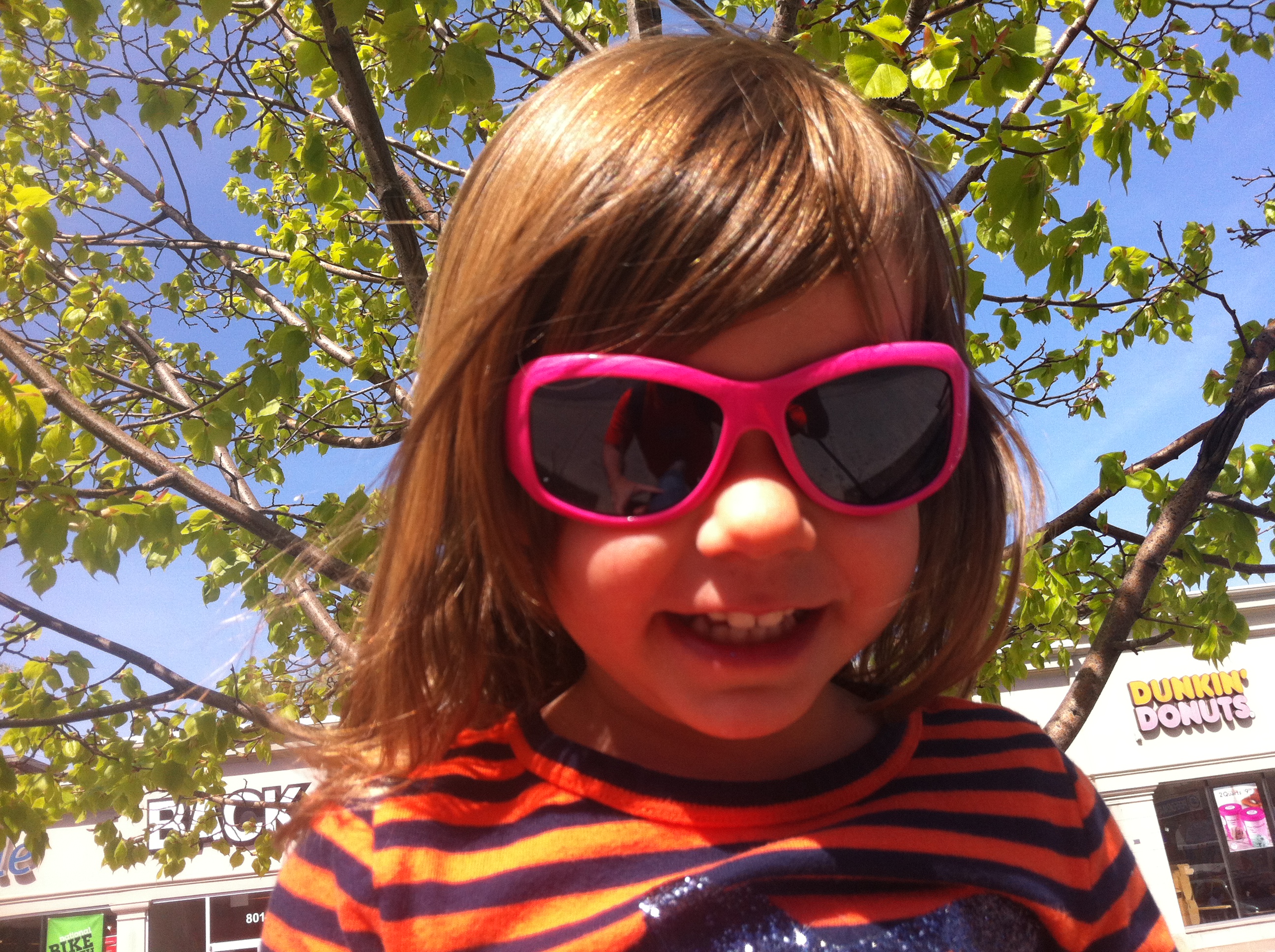 This is a rare photo of Zoe with a pony tail. Suffice to say, it didn't last long.