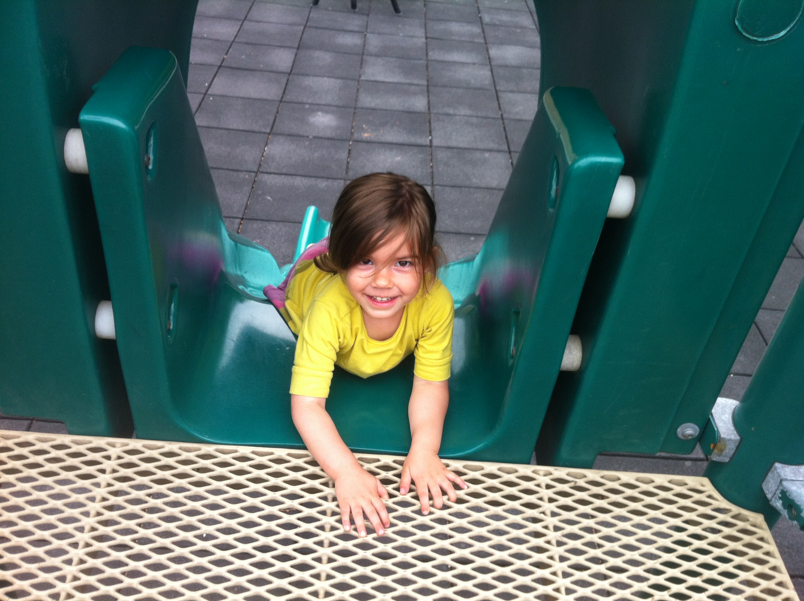 It's hard to say which direction Zoe's going here as she refuse to adhere to the one way convention on the slide.