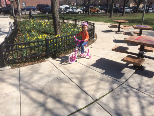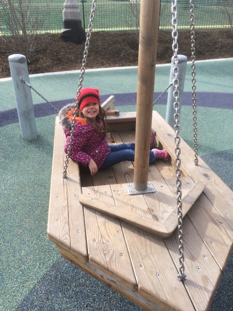 This is Zoe about climb up the new slide towers at Maggie Daley Park.